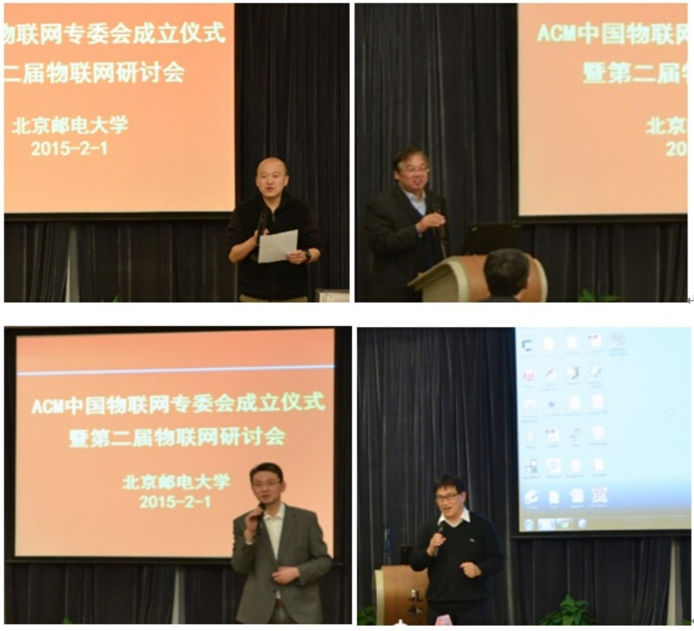 ACM中国物联网专委会成立仪式暨第二届物联网研讨会在北京邮电大学大学成功举办 2015年2月1日,ACM中国物联网专委会成立大会暨第二届物联网研讨会在北京邮电大学成功举办。上海交通大学王新兵教授主持了专委会成立仪式,北京邮电大学马华东教授致欢迎辞,ACM中国理事会主席清华大学刘云浩教授和哈尔滨工业大学李建中教授分别发表了热情洋溢的讲话。随后,刘云浩教授为新成立的物联网专委会主任李建中教授、副主任马华东教授、秘书长王新兵教授颁发了聘书。